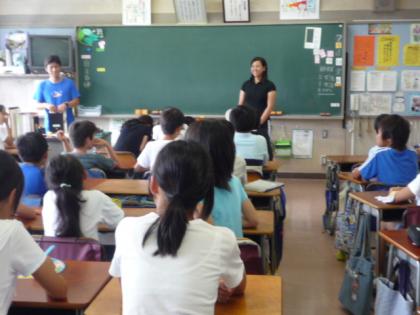 ・6年生では、教師養成塾の学生に子どもたちがみんなで一言・・・