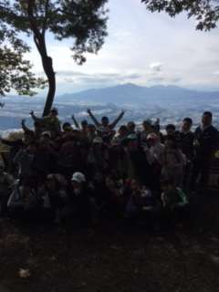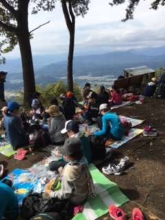 途中から日差しが出てきて山頂からの見晴らしは見事なものでした。絶景を見ながらみんなで弁当を食べました。