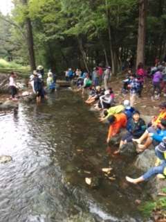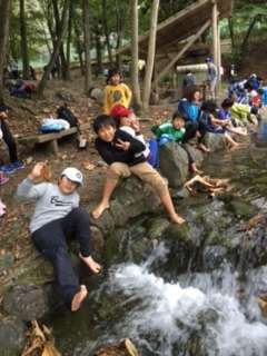 下山後に天狗山公園の川で水遊びをしました。気温が低く水は冷たかったですが、子どもたちは清流に手や足を入れて、自然を直に感じていました。