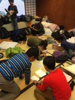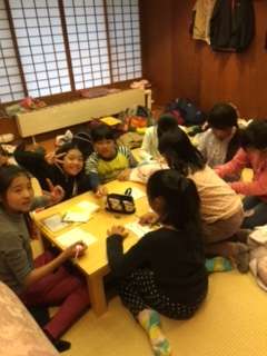 部屋では 公開日 2016/10/13 更新日 2016/10/13 今日のできごと 今はクラスごとの入浴時間ですが、合間の時間ではがきを書いたり、友達と遊んだりしています。 宿泊行事では部屋でのこうした時間が子どもたちにはとても楽しく、忘れられない思い出になるのです。