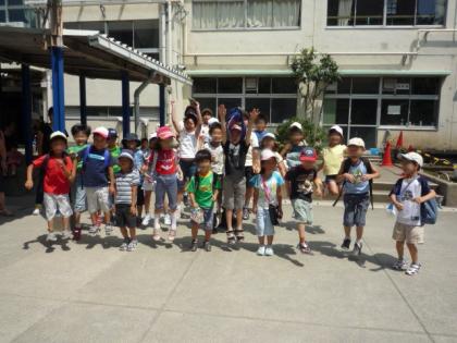 真夏の太陽が照りつける中。学童クラブがキャンプに出発しました。山梨県都留市で楽しい楽しい一泊二日のキャンプです。