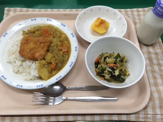 19日は、6年生の連合運動会です。そこで今日は、応援の気持ちを込めて、「カツカレー」を作りました。残さず食べて、みんなで6年生を応援しましょう。