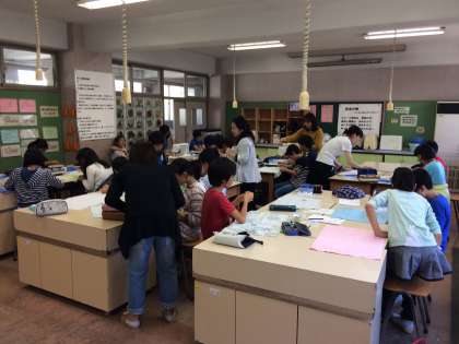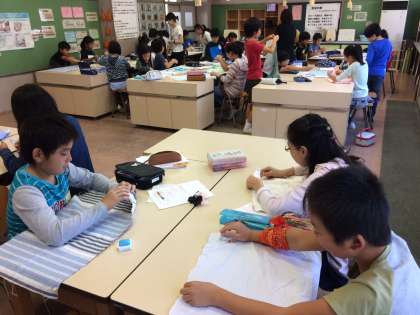 5年生は、家庭科の時間にランチョンマットを作成中です。