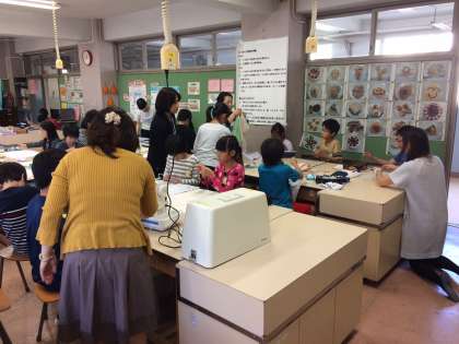 初めてミシンを使った作品を作るということで、保護者の方々がお手伝いに来てくださっています。クラスの子ども達に声をかけ、ご協力いただいていることに感謝です。