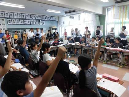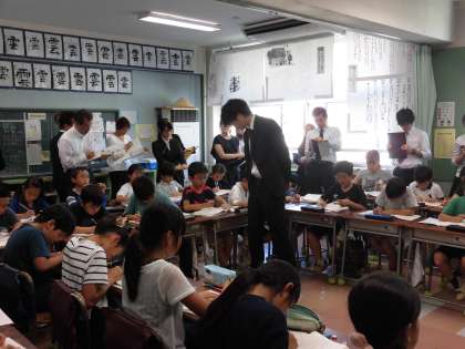 10月26日5時間目、4年2組の宮奨人教諭が校内研究授業を行いました。国語科「ごんぎつね」の授業でした。最後の場面から、ごんと兵十の気持ちを読み取る授業でした。子どもたちは音読したり、話し合いや発表をしたりと、様々な活動を通して、教材に取り組みました。集中して学習し、積極的に発言していく子どもたちの姿がたくさん見られました。