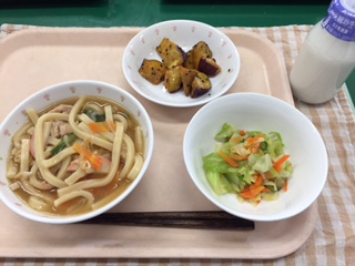 さつまいもには、かぜを予防してくれるビタミンCや、おなかの調子を整えてくれる食物繊維がたくさん入っています。残さず食べましょう。