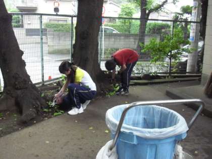 今日から用賀中学校の生徒2名が職場体験に来ています。学校主事の手伝いの仕事をしていまが、天候が不安定ですから、なかなか予定通りの仕事ができません。校舎の窓開け、樹木の剪定、校舎や体育館周りの清掃、避難訓練時の階段等の安全確認、ゴミの分別などの仕事をしました。初日ということで、分からないことがたくさんあったと思いますが、とても誠実に働いていました。仕事内容にも少しずつ慣れていって欲しいと思っています。職場体験は8日(木)まで行われます。