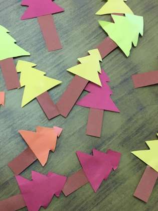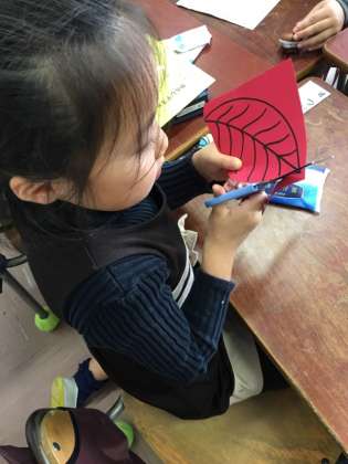 11/16 一年生の学芸会装飾作り 公開日 2016/11/16 更新日 2016/11/16 学年 学芸会が来週に迫ってきました!昨日は体育館の舞台で衣装を着けて、「ないた赤おに」の劇をはじめから通して練習しました。口を大きく開けて自分のセリフを言えるようになってきました。 今日は学芸会の舞台に飾る木の葉と、山の木を作りました。みんなで心を一つにして劇を成功させたいです!!