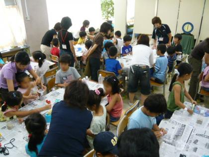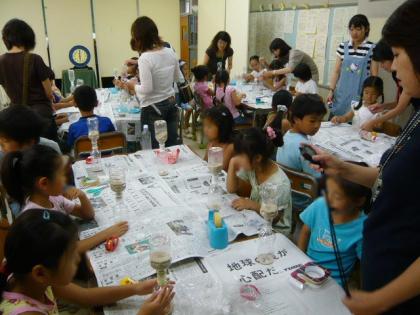 算数ルームに低学年の子どもたちが30人程集まり、本の読み聞かせと砂時計作りがありました。