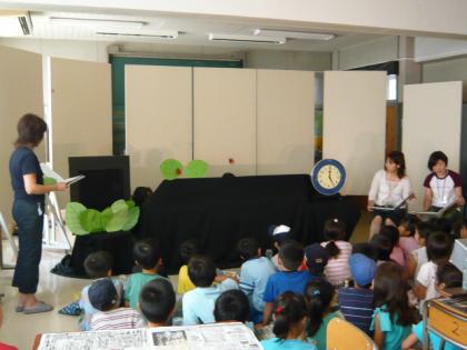 最初と最後に本の読み聞かせもありました。ときに歓声が上がるほど楽しく夢中になって見ていました。
