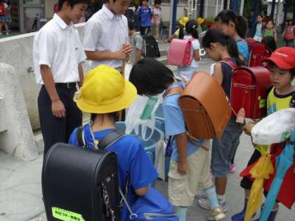 今日は「ようがの学び舎」合同地域清掃がありました。子どもたちはビニール袋を手に持ち、登校途中にごみを拾いました。用賀の町はあまりごみは落ちていないのですが、それでも子どもたちは拾ってきました。紙ごみや空き缶、ペットボトルなどが多くありました。校門を入ると「ようがの学び舎生徒会」の中学生が3名来てくれていて、笑顔で分別のお手伝いをしてくれていました。とても微笑ましい光景で、これからも学び舎3校が、合同でできる活動がさらに増えてくるといいなと思いながら、うれしい気持ちでいっぱいでした。