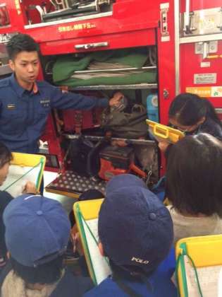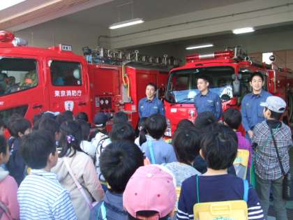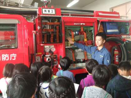 12/2 3年消防署見学 公開日 2016/12/03 更新日 2016/12/03 学年 12月2日、社会「火事を防ぐ」の学習として、玉川消防署用賀出張所へ見学に行きました。子どもたちはポンプ車や消防署の施設を見学しました。ホースの長さやポンプ車の迫力に驚きながらも、たくさんのことを消防署の方に質問し、興味をもって学習することができました。玉川出張所用賀出張所の皆さん、ありがとうございました。