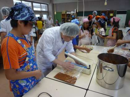 今日、東京農業大学の舘先生、古庄先生、学生さんたちのお世話で、みそこしと袋づめを行いました。