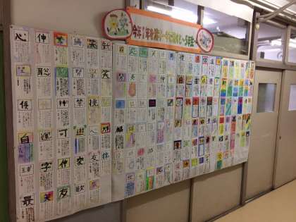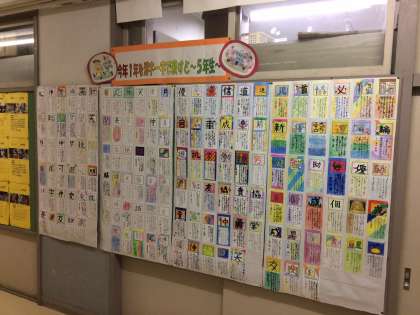 発表の日と合わせて、職員室前には5年生が1年間を振り返り「今年の漢字」を掲示しました。