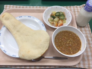 12/16 本日の給食 公開日 2016/12/16 更新日 2016/12/16 給食 〜今日の献立〜 ナン 牛乳 キーマカレー ひよこ豆入りポテトサラダ 〜給食メモ〜 今日は、ポテトサラダに使った、「じゃがいも」のクイズを出したいと思います。じゃがいもは、フランスで「大地の○○」と呼ばれています。さて、何と呼ばれているのでしょうか? 1.大地のりんご 2.大地のお肉 3.大地の薬 ※クイズのこたえは、「食材がとれたところ…」の最後にのせています。 食材がとれたところ・・・ 閉じる 豚肉…静岡県 じゃがいも…北海道 にんにく…青森県 たまねぎ…北海道 セロリー…愛知県 にんじん…千葉県 りんご…長野県 しょうが…高知県 きゅうり…埼玉県 クイズのこたえは、1の「大地のりんご」です。じゃがいもには、りんごのようにビタミンCがたくさん入っています。ビタミンCは、かぜを予防してくれます。残さず食べて、今日も元気に過ごしましょう。