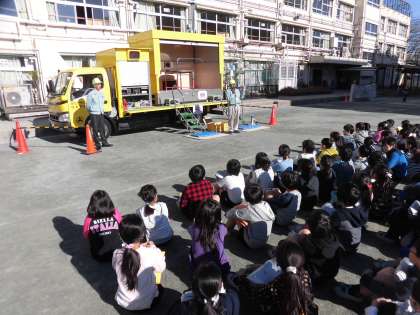 本日の避難訓練後には、起震車体験をした4年生。大きな地震が来たらどのような感じなのか、実際に感じることができました。