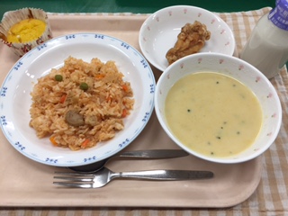 今日の給食は、冬至とクリスマスを合わせた献立にしました。