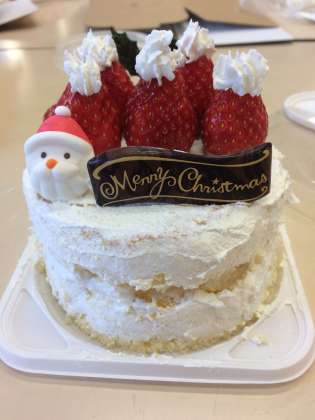 それぞれ持ってきたフルーツやクリームなどをのせて、素敵なクリスマスケーキを完成させることができました。