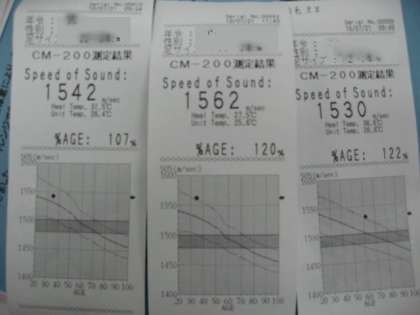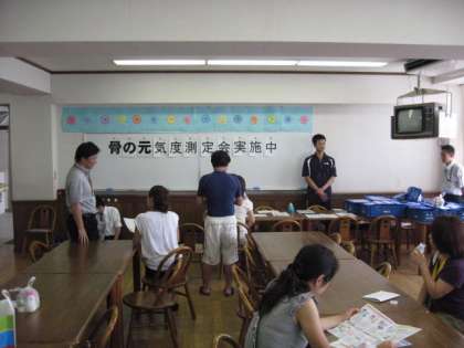 明治乳業さんの協力で、骨密度を測定し、一人一枚データをもらいます。