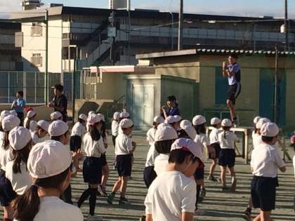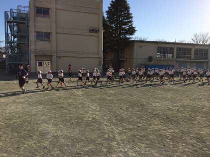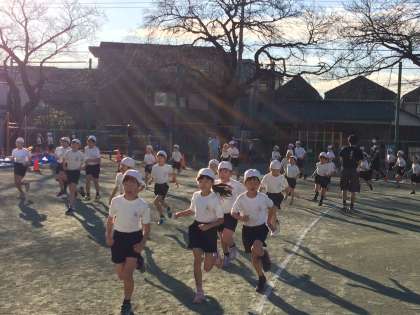 今朝の体育朝会は、2・4・6年生が持久走に取り組みました。寒空のもと、元気いっぱいの子ども達。1〜4年生は、マラソンカードが配布されました。朝の時間や体育の時間を中心に走った周数を記録していきます。