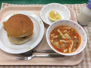 1/18 本日の給食 公開日 2017/01/19 更新日 2017/01/19 給食 〜今日の献立〜 セルフフィッシュサンド 牛乳 ミネストローネ くだもの(はるか) 〜給食メモ〜 今日は、セルフフィッシュサンドに使った「たら」のクイズを出したいと思います。たらは漢字で書くと、魚へんにある漢字を書きます。その漢字とは、次のうちのどれでしょうか? 1.雷 2.雨 3.雪 ※クイズのこたえは、「食材がとれたところ…」の最後にのせています。 食材がとれたところ・・・ 閉じる 豚肉…青森県 たら…アメリカ・ロシア 鶏卵…青森県 キャベツ…神奈川県 たまねぎ…北海道 にんじん…千葉県 セロリー…静岡県 かぶ…千葉県 じゃがいも…北海道 はるか…熊本県 クイズのこたえは、3の「雪」です。魚へんに雪と書いて、「たら」と読みます。雪の降るころによくとれ、身も雪のように白いことから、「鱈」と名前がつけられたそうです。