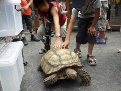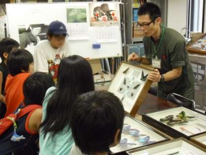 7/23 お出かけスマイル バイオリウム 公開日 2010/07/23 更新日 2010/07/23 校長室より 今日のお出かけスマイルは東京農業大学のバイオリウムです。学芸員さんの指導のもと、熱帯地方の動植物の楽しい話を聞かせていただきました。実際に大トカゲやイシガメに触れたり、貴重な昆虫標本を見せていただいたりすることもできました。 とても丁寧な対応をしていただき子どもたちの質問が止むことは在りませんでした。企画・引率していただいた保護者の皆さまに感謝申し上げます。