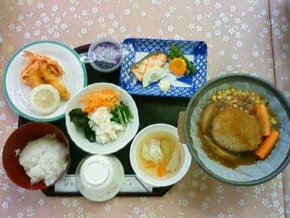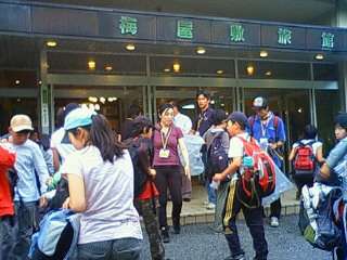 絶好のお天気の中、山登りができて宿舎に到着しました。早め、早めの行動ができたので、宿舎到着後、しばらくは自由行動ができました。部屋で楽しく過ごした後は、お風呂に入り、お土産を買って、夕食を食べました。