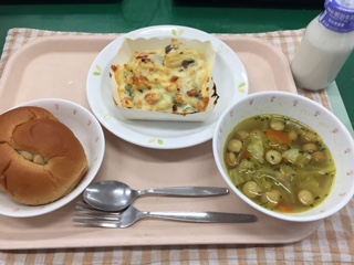2/20 本日の給食 公開日 2017/02/20 更新日 2017/02/20 給食 〜今日の献立〜 黒砂糖パン 牛乳 マカロニグラタン 野菜のカレースープ 〜給食メモ〜 今日は、「グラタン」のクイズを出したいと思います。グラタンは、どこで作られた料理でしょうか? 1.日本 2.イタリア 3.フランス ※クイズのこたえは、「食材がとれたところ…」の最後にのせています。 食材がとれたところ・・・ 閉じる 鶏肉…岩手県 えび…パキスタン たまねぎ…北海道 ブロッコリー…愛知県 セロリー…愛知県 にんじん…千葉県 キャベツ…愛知県 パセリ…香川県 クイズのこたえは、3の「フランス」です。「グラタン」という名前は、「焦げ目をつける」という意味のフランス語から付けられました。焼き過ぎて焦がしてしまった料理が以外においしかったので、焦げ目をつけたグラタンが作られるようになったそうです。