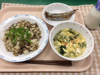 2/21 本日の給食 公開日 2017/02/21 更新日 2017/02/21 給食 〜今日の献立〜 豚肉とごぼうのごはん 牛乳 焼きししゃも かきたま汁 〜給食メモ〜 今日は、今が旬の「ごぼう」を使って「豚肉とごぼうのごはん」を作りました。クイズです。「豚肉とごぼうのごはん」に使った「ごぼう」の切り方は、次のうちのどれでしょうか? 1.乱切り 2.小口切り 3.ささがき ※クイズのこたえは、「食材がとれたところ…」の最後にのせています。 食材がとれたところ・・・ 閉じる 米…埼玉県 豚肉…神奈川県 鶏卵…岩手県 ししゃも…カラフト ごぼう…熊本県 さやえんどう…愛知県 にんじん…千葉県 だいこん…神奈川県 えのきたけ…新潟県 長ねぎ…千葉県 クイズのこたえは、3の「ささがき」です。切った形が、「笹の葉」に似ていることから名前がつけられたそうです。切り方には、たくさんの種類があります。給食でも、料理によって切り方を変えています。