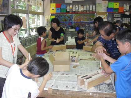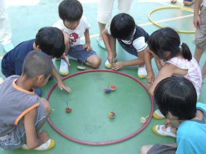 今日のスマイルスクールは、YCC(ようがコミュニティークラブ)の皆さんが、カラフルこま作りを教えてくださいました。まず、こまを粗めのやすりや細かいやすりで丁寧に磨き、こまの中心にキリで穴をあけました。次に、こまとひごに色をつけ、よくまわる位置をみつけたらボンドで固定しました。できあがった子どもから屋上に上がって、こま同士の対戦をして遊びました。まだまだ遊んでいたいという子どもたちがたくさんいました。