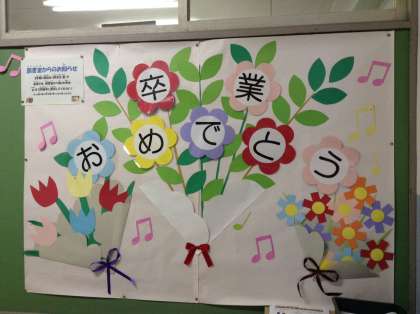 6年生の卒業に向けて、ブックアシストの皆様が主事室前と図書室前にすてきな飾りつけをしてくださいました!