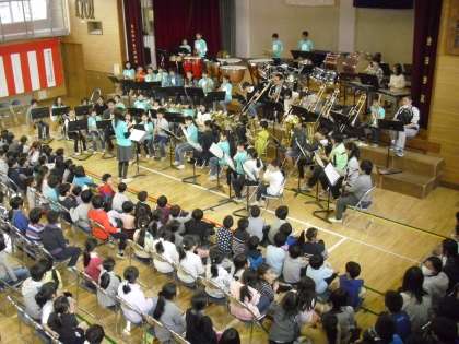 キッズバンドの校内コンサートが昼休みに行われました。6年生にとってもこのメンバーにとってもこれが最後の活動です。