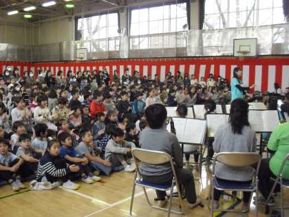 会場の体育館には1年生から6年生までのたくさんの子どもたちが集まりました。キッズバンドのすてきな演奏に合わせて、体育館は気持ちのよい一体感に包まれ、みんなで楽しい時間を共有できました。