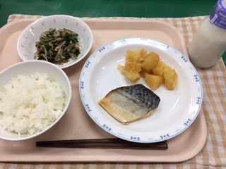 さばには、記憶力をよくする「DHA」という栄養素が入っています。残さず食べましょう。
