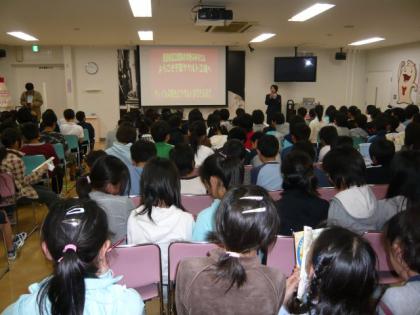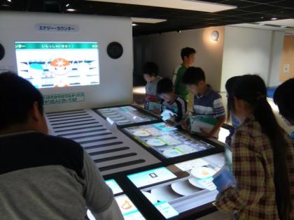 バスで首都高で六本木ヒルズや東京タワーを車窓から眺め、湾岸線を経由して京葉道路に乗って千葉市にあります「TEPCO地球館」に到着しました。まず目に入るのは、メリーゴーランド。入口にいきなりあります。5年生にはちょっと恥ずかしい気持ちもありつつも楽しんで乗っている子どもたちがたくさんいました。ここで、いきなり頭は遊びモードになりそうですが、館の中は遊びの中に学びがあるコーナーがたくさんあります。皆、メモを片手に、気になったことや解説などを書き込んでいました。写真は、回転寿司をモチーフにした体験展示で電気エネルギーについて学ぶコーナーです。画面をタッチしてゲーム感覚で学ぶことができます。