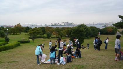 2枚目は、昼食場所であるポートパークです。ちょっと寒かったけど、広い敷地でおいしくお弁当をさっさと食べて、芝生の上を走ったり、転がったりしてたくさんあそびました。