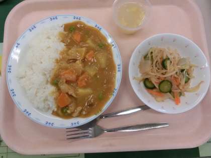 今日は、「カレーライス」のクイズを出したいと思います。今日の給食のカレーライスには、じゃがいもを何個使ったでしょうか?