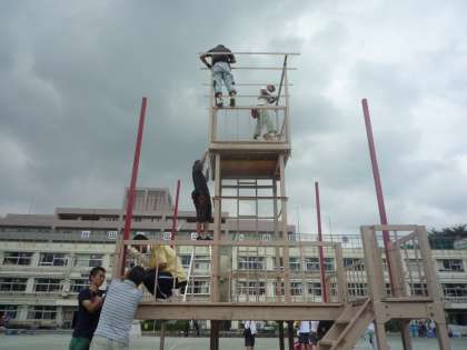 本日は朝8時から、やぐらの会の方々を中心に、町会等地域の方が約70名、本校の教職員が25名参加して準備が行われました。ようがの学び舎用賀中学校からも、生徒がボランティアとして参加してくれ嬉しく思いました。