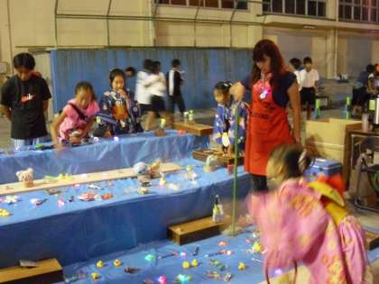 本校の教職員も「焼そば」「焼き鳥」「輪投げ」「ポン菓子」のお店を担当しましたが、長蛇の列ができてにぎわいをみせていました。本校を離任された先生方も多く来てくださり、懐かしさとともに嬉しく思いました。本当にありがとうございました。