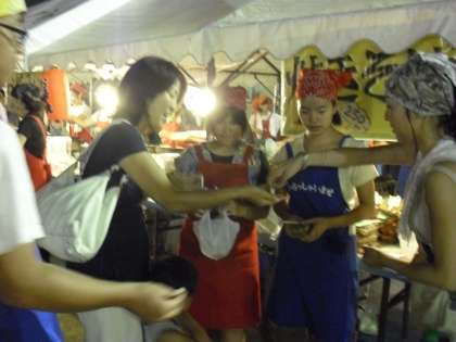 今日も教職員担当のお店は大盛況です。ようがの学び舎用賀中学校からはボランティアの中学生が来てくれました。今後このような輪が広がり、将来、この町のお祭りの後継者に育ってくれることを願っています。お祭りの最後を飾るのは大抽選会です。