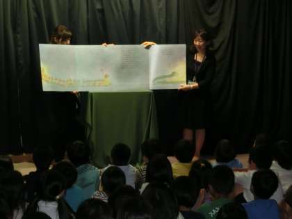 1年生もたくさん参加し、3冊の読み聞かせを楽しんで聞いていました。