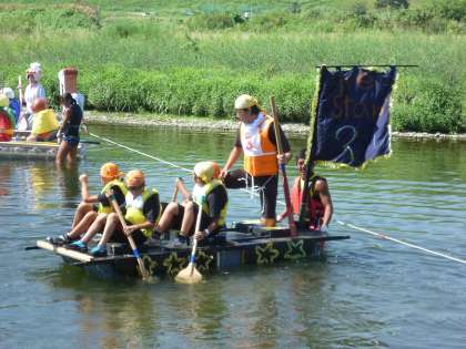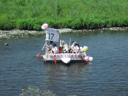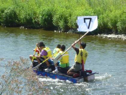 今日はアドベンチャーin多摩川です。いかだは、夏休み中に子どもたちと先生方、保護者の方々が力を合わせて作ったものです。特に今年は、子どもたちが一生懸命に作っていたのが印象的でした。昨日、そして今朝もおやじの会の方々を中心にお手伝いをいただき準備が整いました。