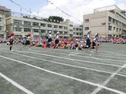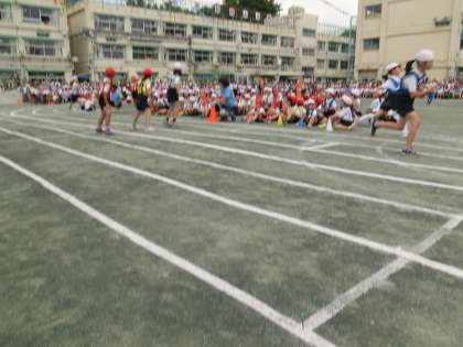 低学年リレーは、1・2年生は半周、3年生はトラック1周を走りました。今までの練習の成果を発揮し、素晴らしいバトンパスを見せてくれました。