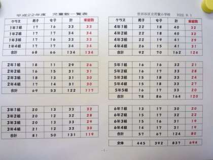 9月1日現在で837名で2学期が始まります。4年生の出入りが多く、4の3には3人の友達が一度に転入してきましたからみんな大喜びです。