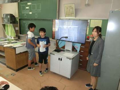 授業は、2年1組担任の平井教諭が体育科で、4年4組の鈴木孝輔教諭が社会科、6年2組は佐藤愛美教諭が家庭科の授業をしました。