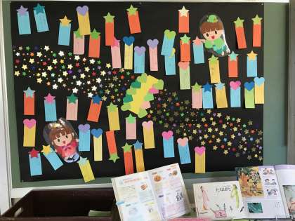 ブックアシストの皆さんが七夕に向けて素敵な飾りつけをしてくださいました。ありがとうございます。