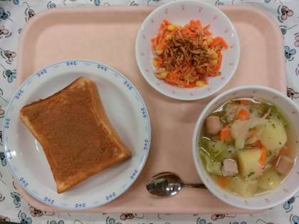 今日は、にんじんサラダに使った、「にんじん」のクイズを出したいと思います。「にんじん」がもとになって名前がつけられた栄養素があります。さて、その栄養素とは、次のうちどれでしょうか?