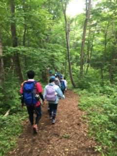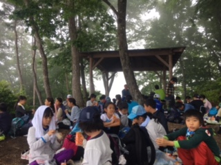 山頂に到着しました。霧に包まれ、幻想的た景色を見ながらおいしくお弁当をいただきました。これから下山です。