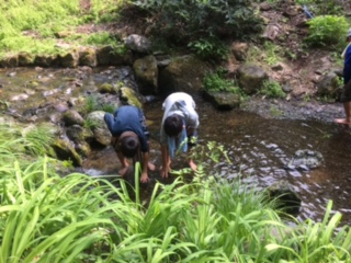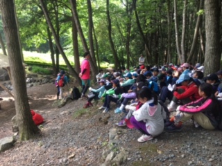 両手で木の根っこを掴んだり、互いの手を取り合ったりしながら天狗山公園に到着しました。川遊びでは登山で疲れた足を冷やして、スッキリ。これから宿舎に戻り、ゴミの分別とおやつタイムです。川場移動教室も後半戦です。