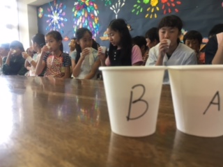 6月30日5年生味噌詰め 公開日 2017/07/04 更新日 2017/07/04 学年 4年生の時に作った味噌が完成しました。古庄先生のご指導の下、農大の方々やお家の方にお手伝いいただき、味噌詰めを行いました。味噌詰めが終わると、出来たて味噌の試食を行なったり、味噌の利点や効果などを学んだりしました。夏休みの宿題には「味噌料理」があります。どんな料理ができるのか、楽しみです。ご指導お手伝いありがとうございました。